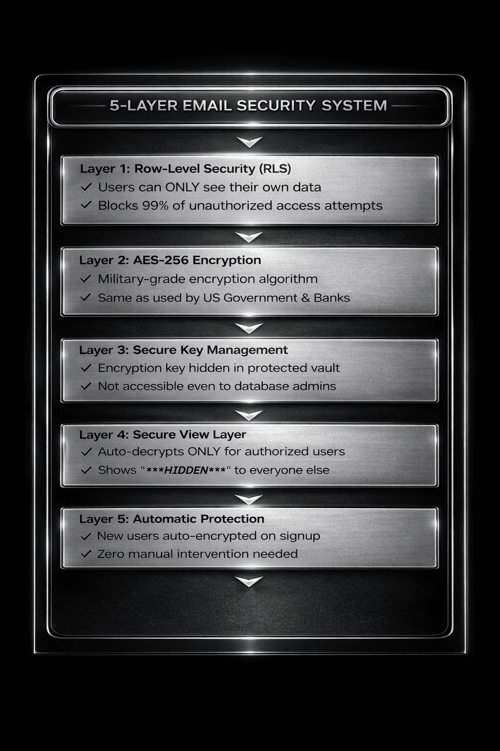 Email Encryption | Military-grade AES-256 protection on all user emails |